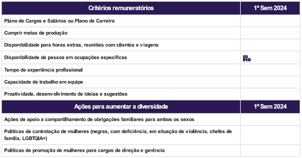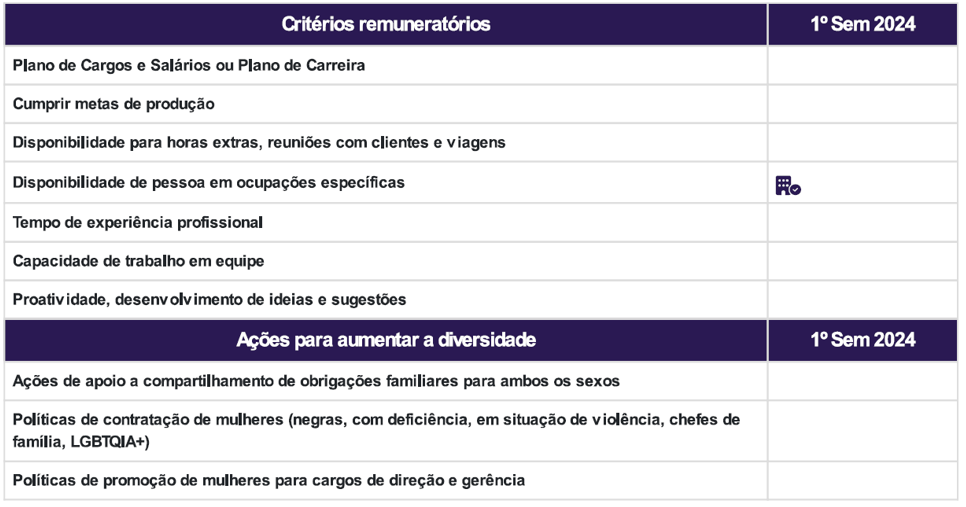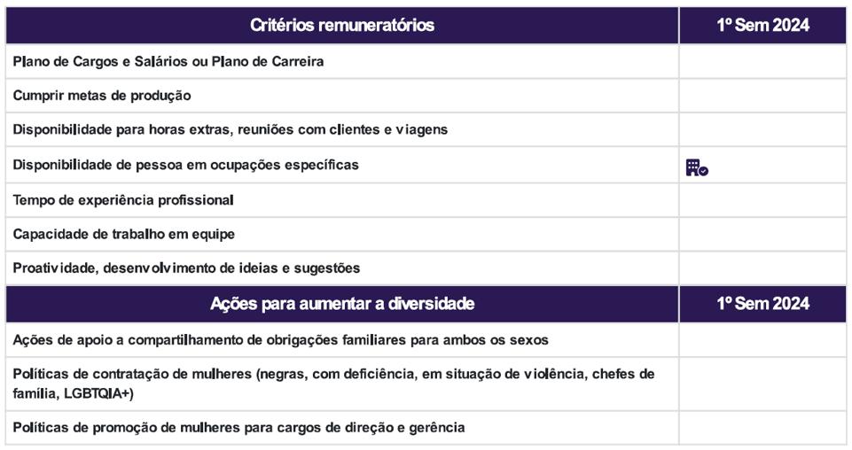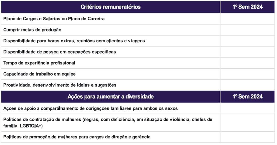 1. Critérios de remuneração e ações para garantir diversidade: